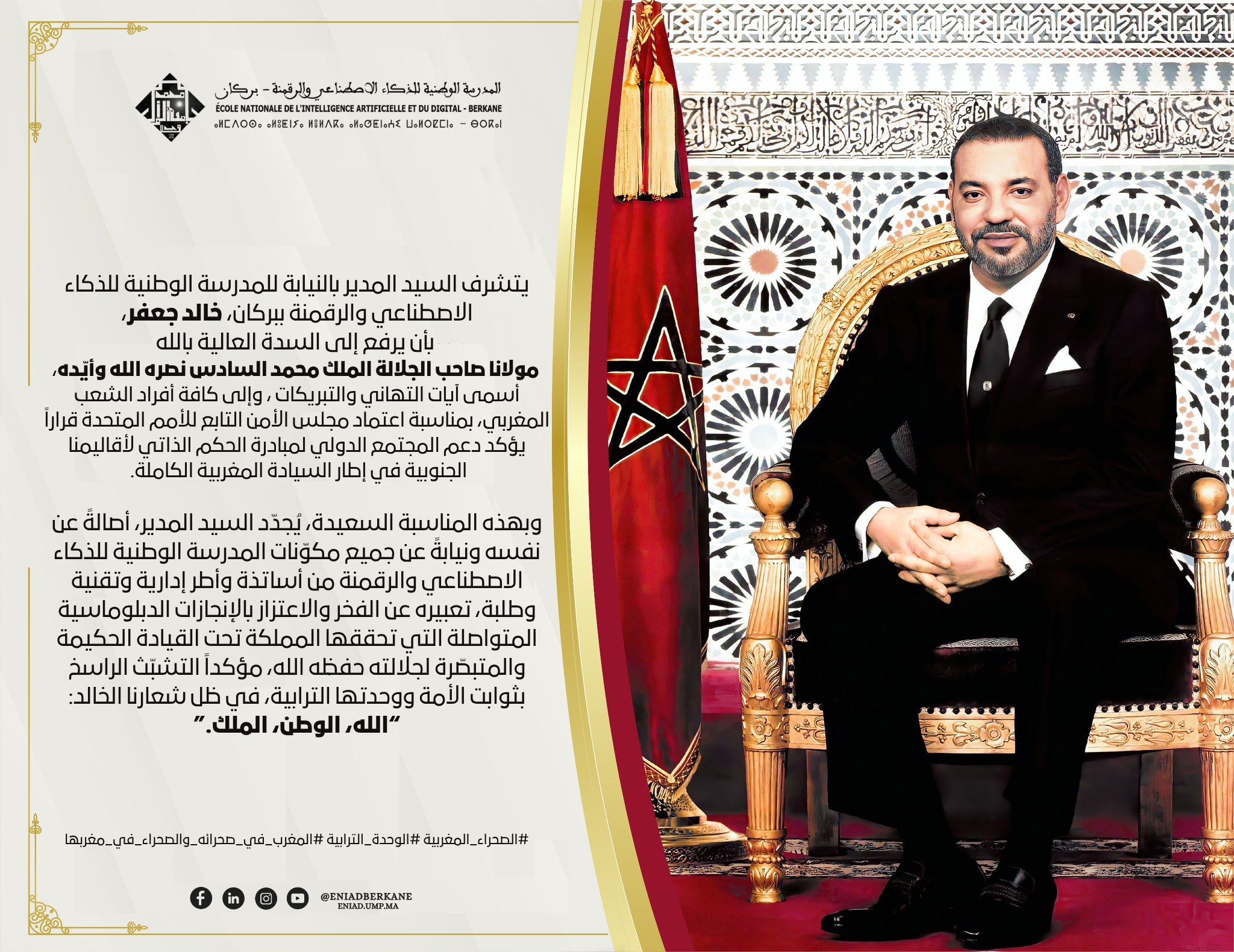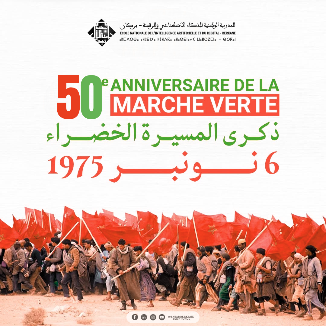 L'École Nationale de l'Intelligence Artificielle et du Digital de Berkane célèbre le 50ème anniversaire de la Marche Verte avec fierté et honneur