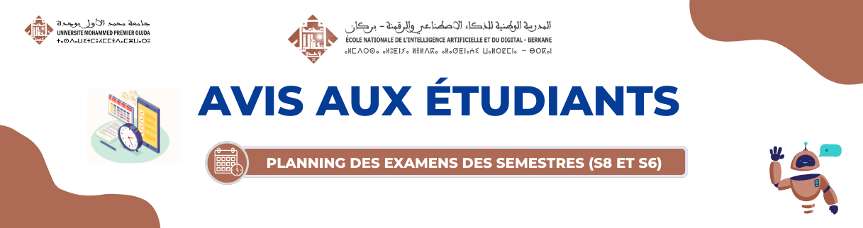 Avis aux Étudiants - Planning des contrôles fin des semestres S6 & S8