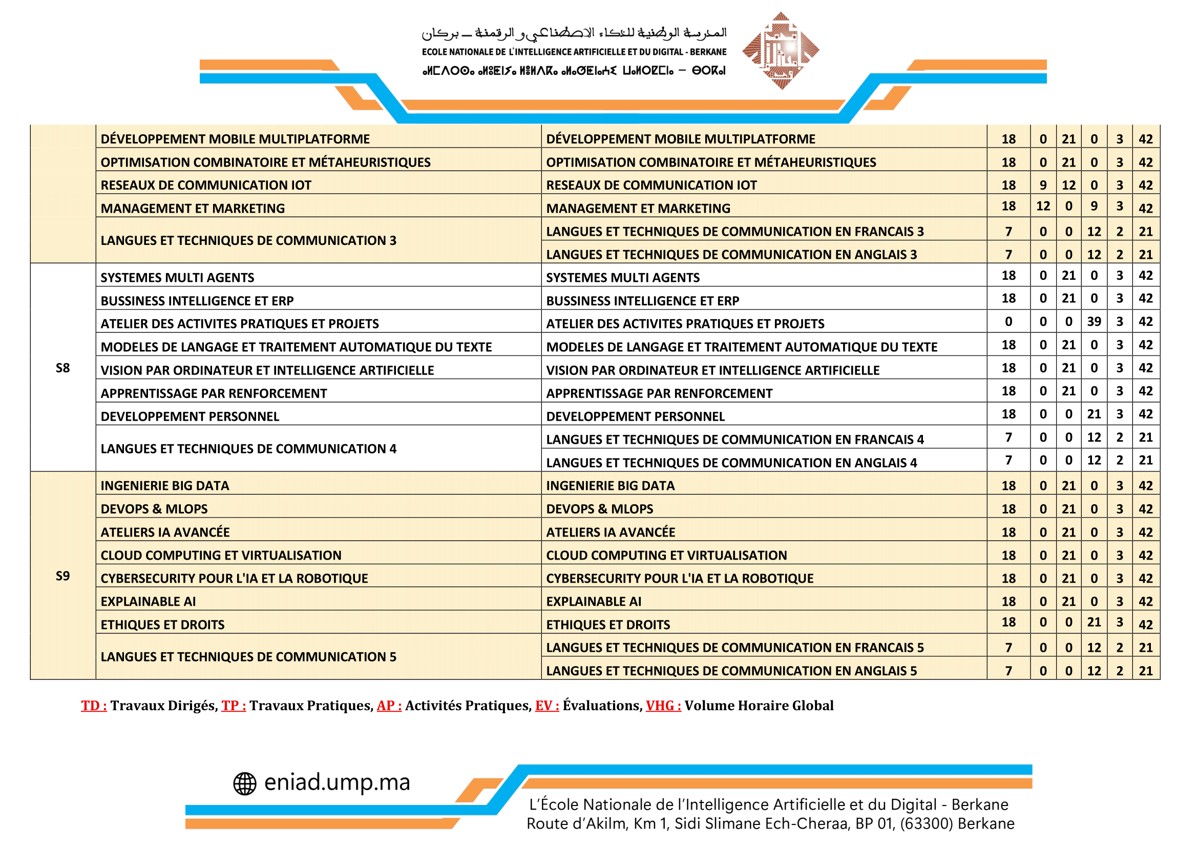 Emplois du temps pendant le mois sacré de Ramadan – Semestre Printemps (S6 et S8)