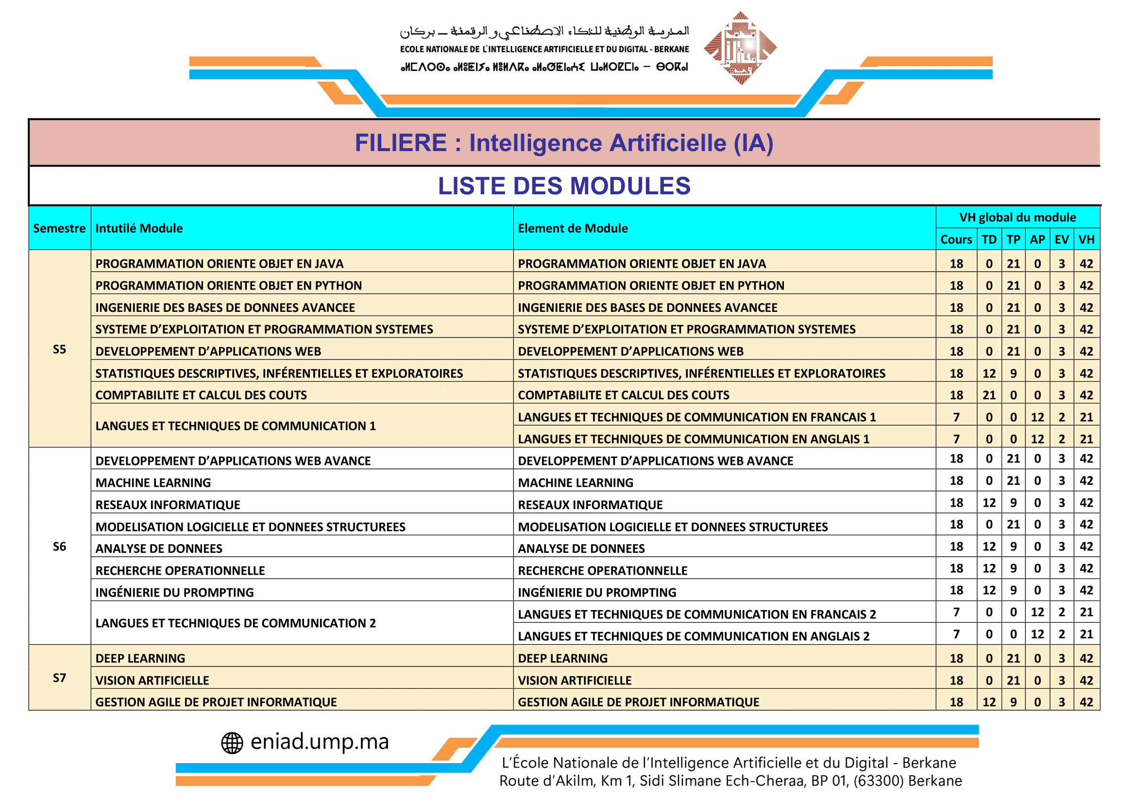 Modules de la filière "Intélligence Artificielle"
