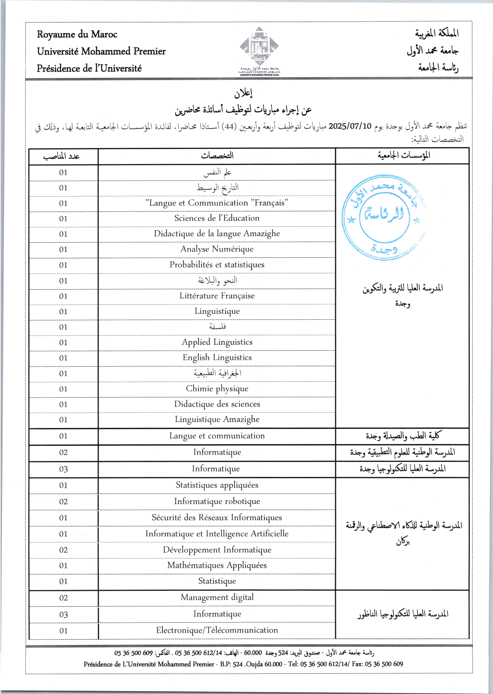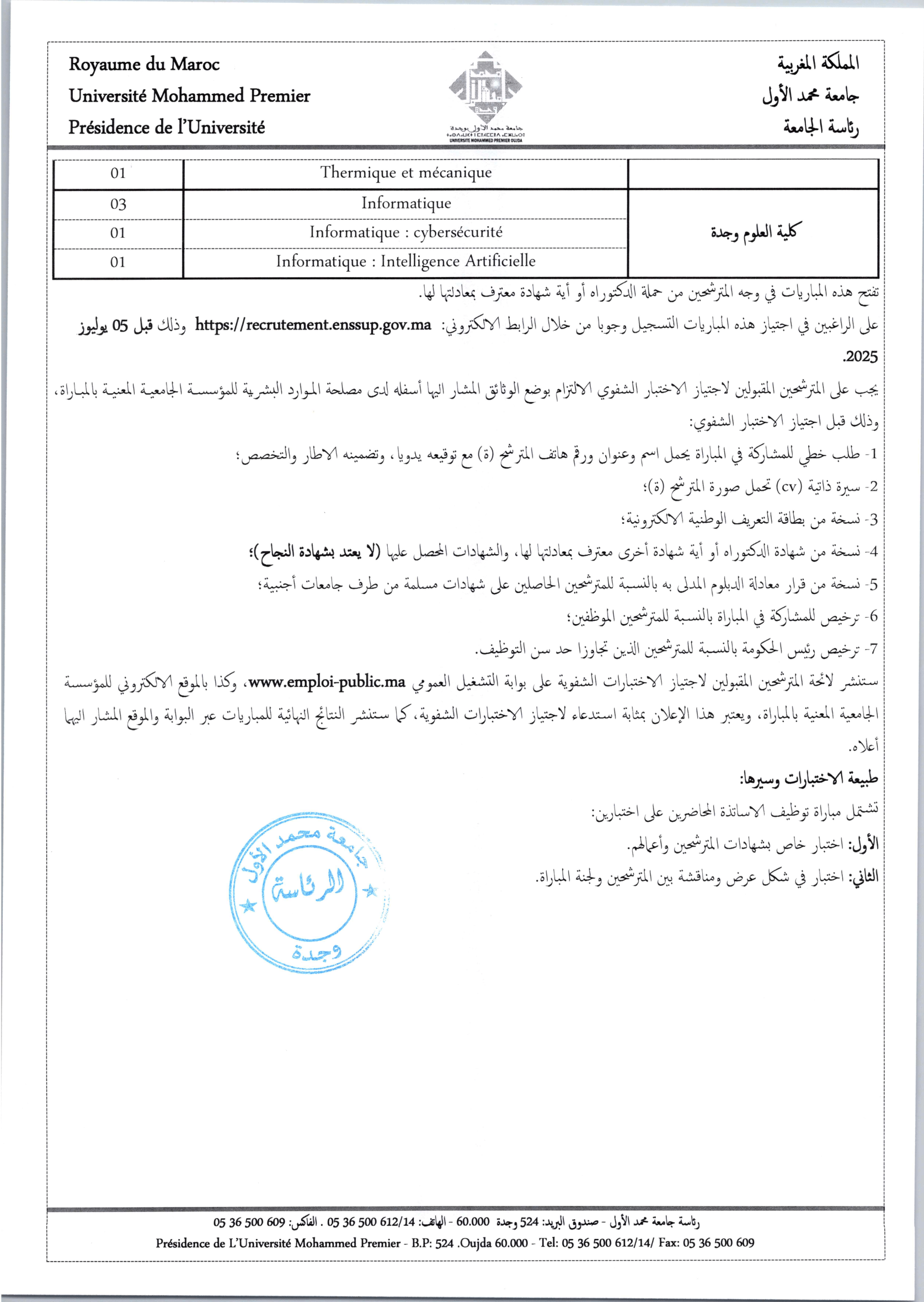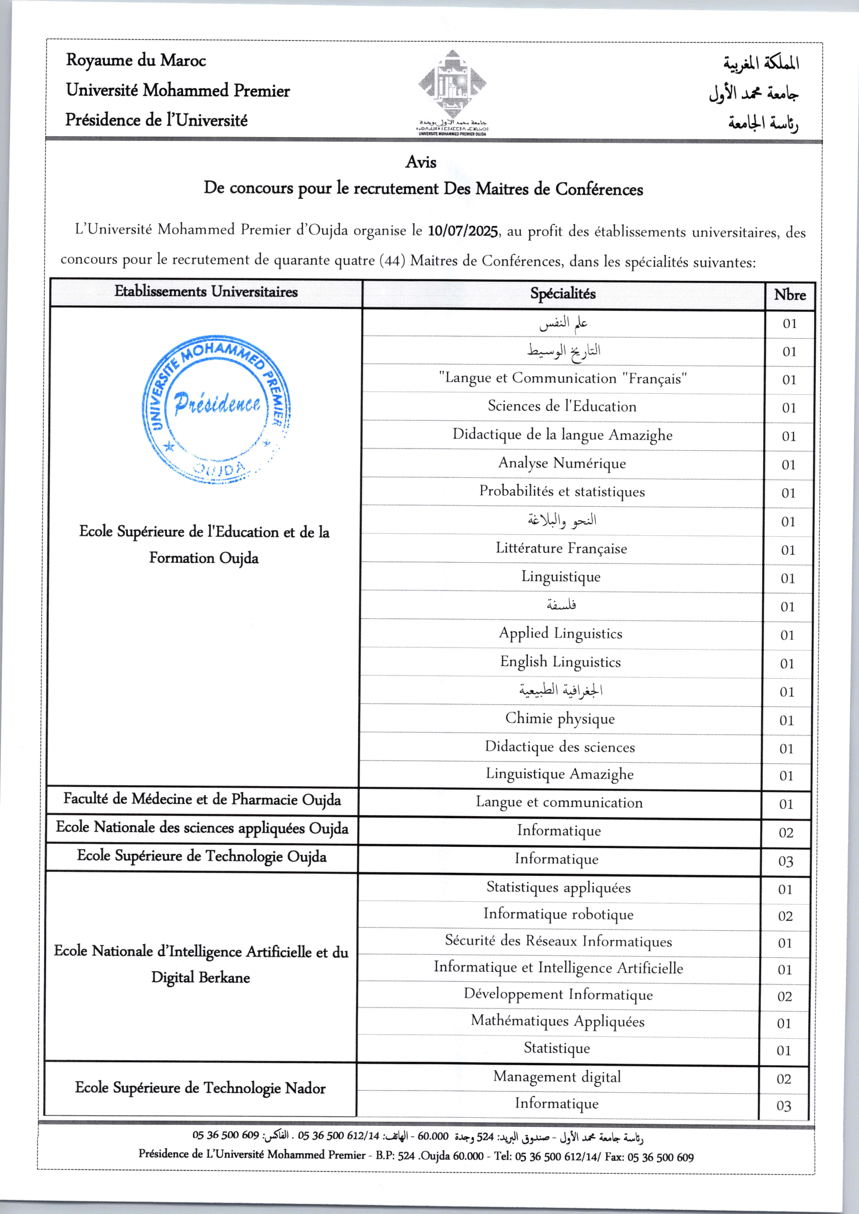 Avis de Concours pour le recrutement (session 10/07/2025)