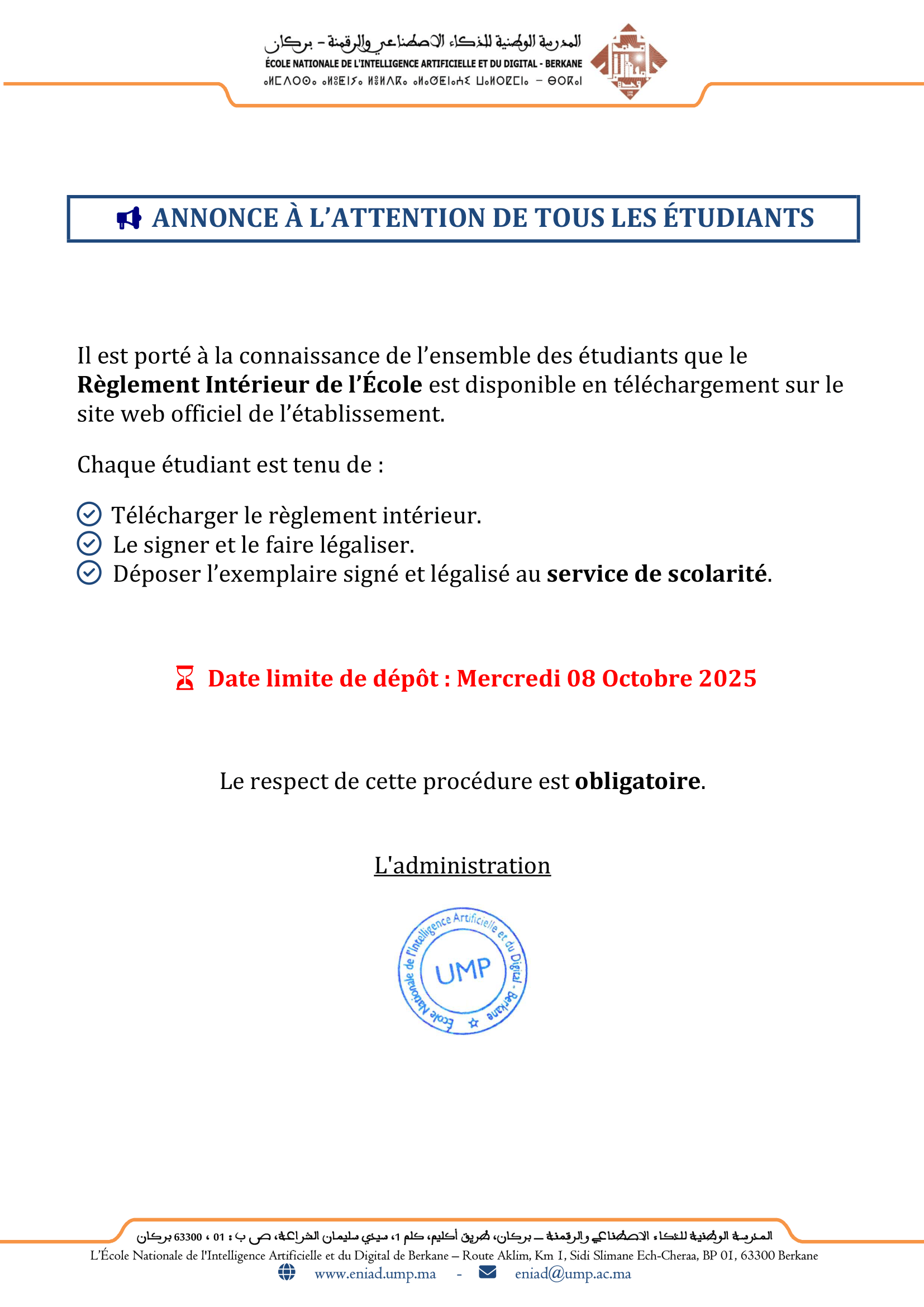 RÈGLEMENT INTÉRIEUR DE L’ÉCOLE